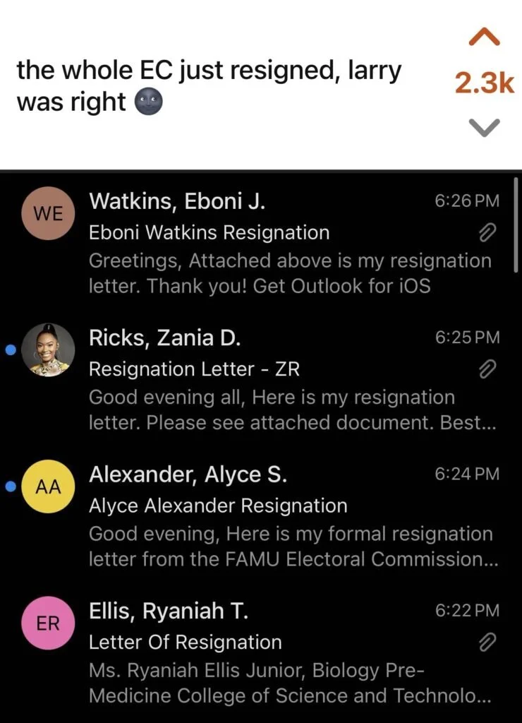 Ryaniah Ellis, one of the EC members who submitted their resignation, went live alongside the 2017 Queen of Orange and Green Jakela London and the 2017 Elections and Appointments Chair Doney Eden, to speak on why they all resigned Thursday night.